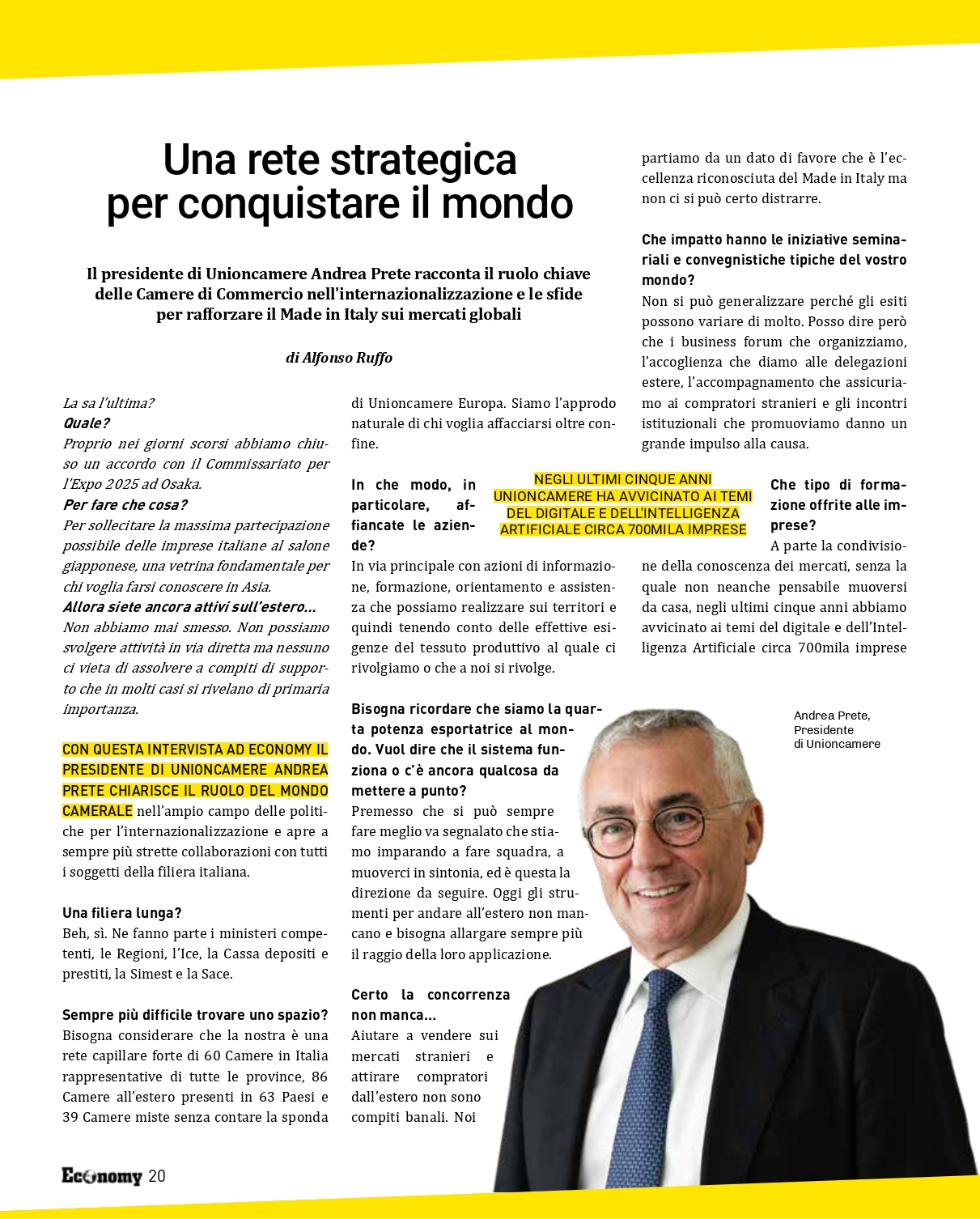 Scarica l’intervista del Presidente Unioncamere Andrea Prete per la rivista Economy.